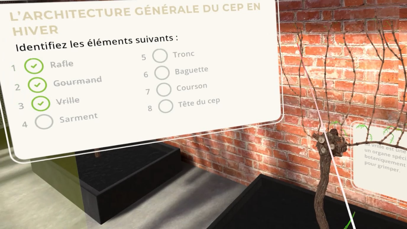 Intégrez la réalité virtuelle pour vous entraîner à la taille de vigne, en toute saison et peu importe les conditions météorologiques.